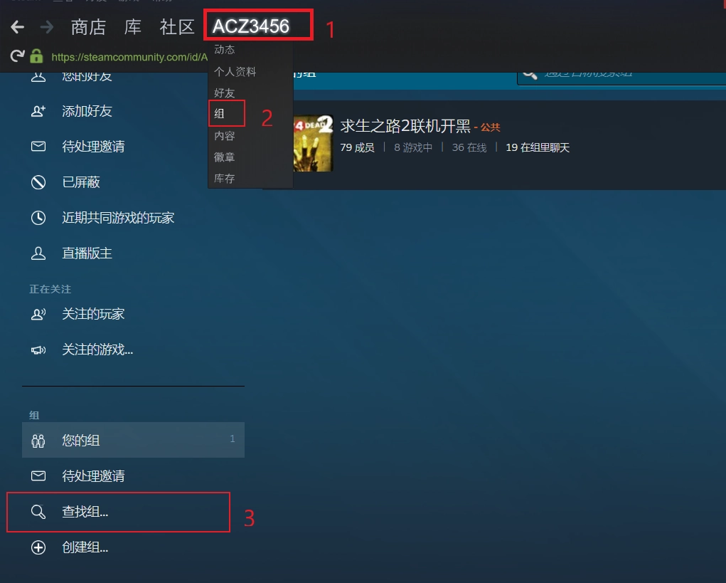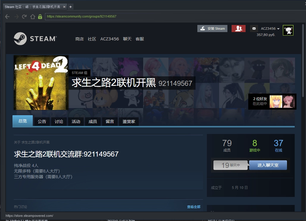 在浏览器上面的地址栏输入:https://steamcommunity.com/groups/921149567