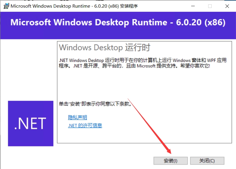 1.安装windowsdesktop-runtime-6.0.20-win-x86.exe