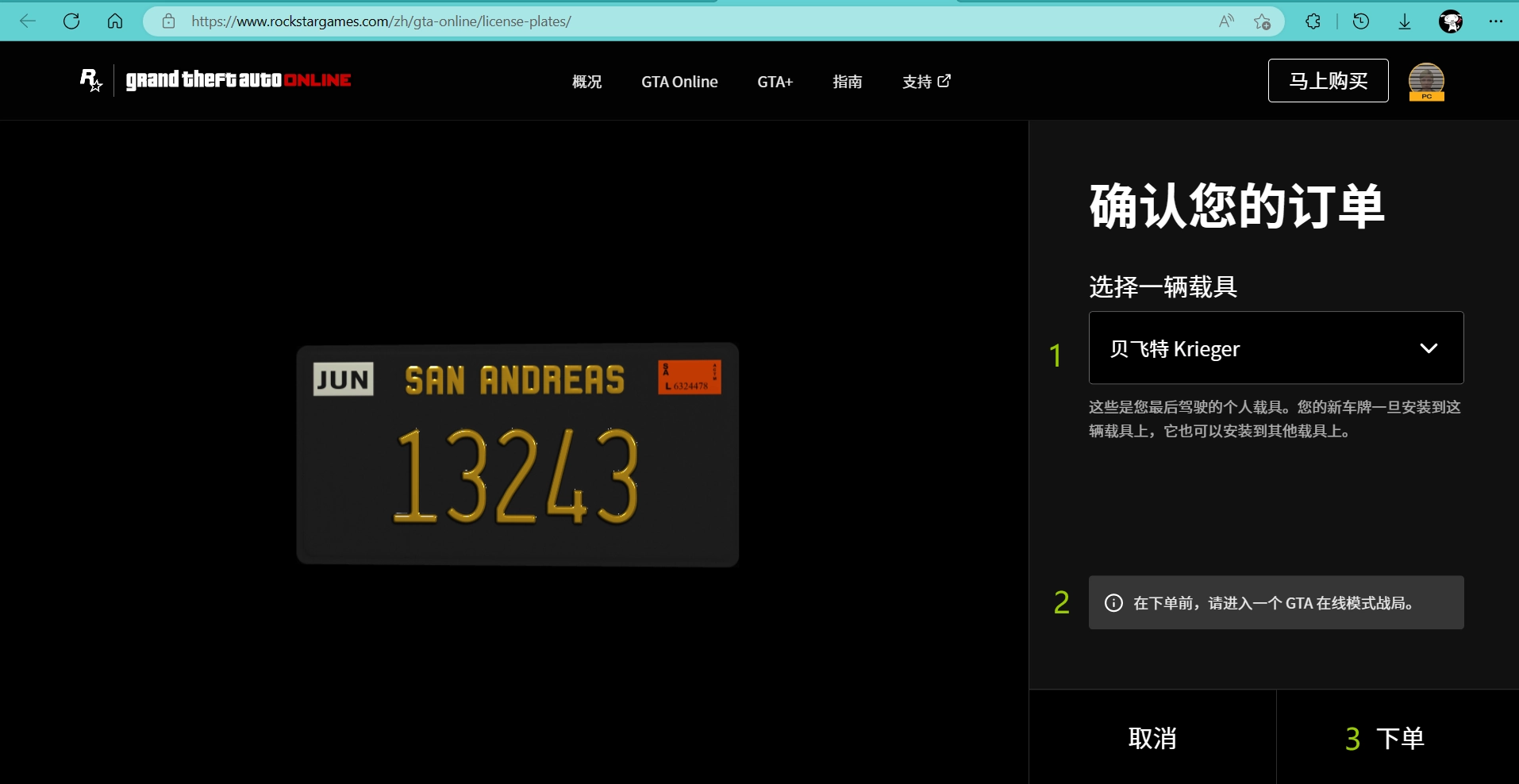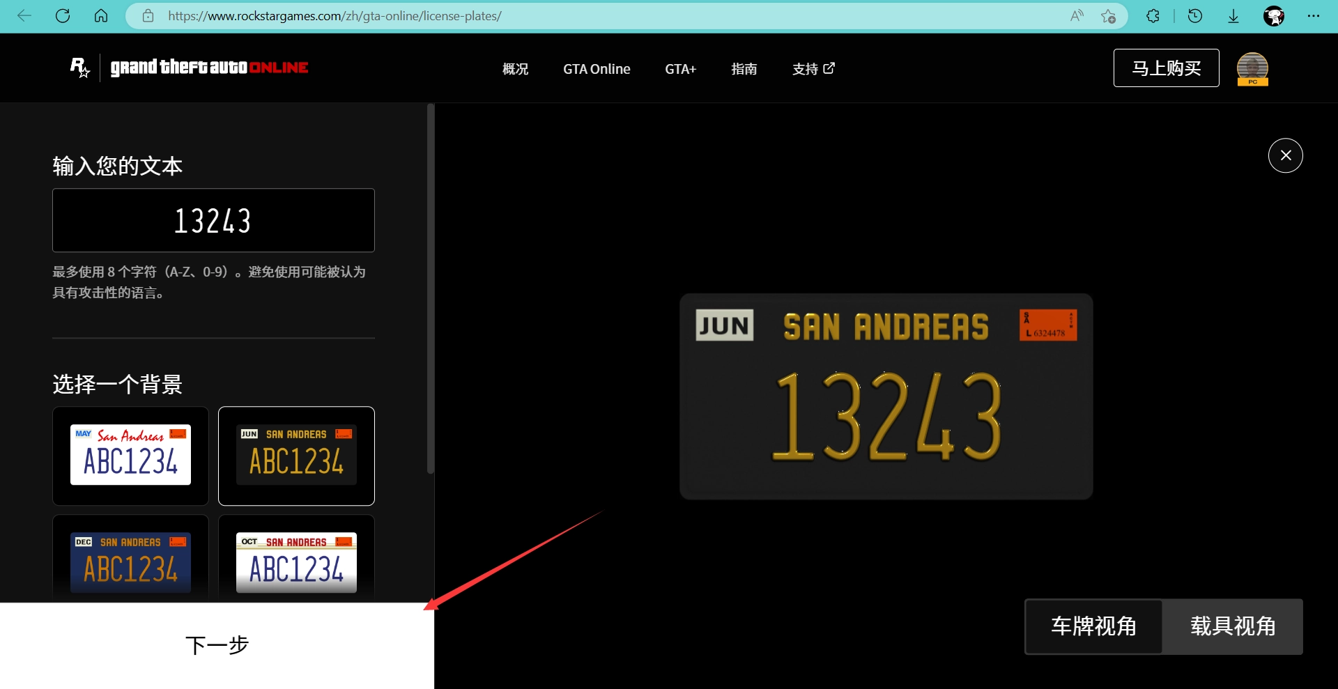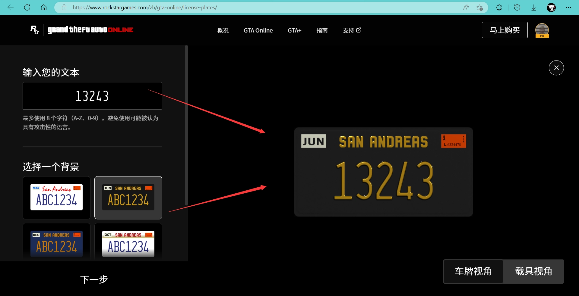 1. 登录R*网站 https://www.rockstargames.com/zh/gta-online/license-plates/)https://www.rockstargames.com/zh/gta-online/license-plates/