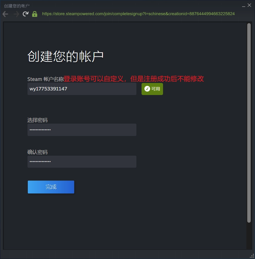 5. 自定义账号和密码(账号就是登录账号,可以设置成你想要的,但是登录账号注册后不能改