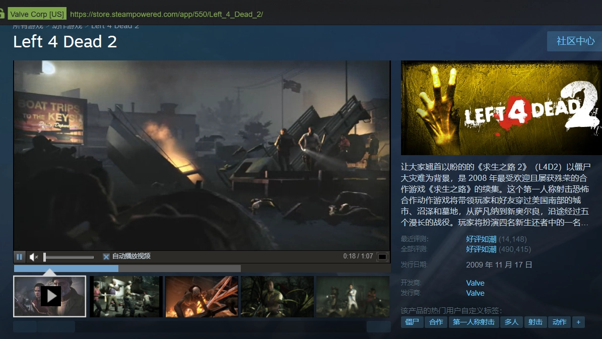 在应用商店搜索Left 4 Dead2或者求生之路2。 链接https://store.steampowered.com/app/550/Left_4_Dead_2/