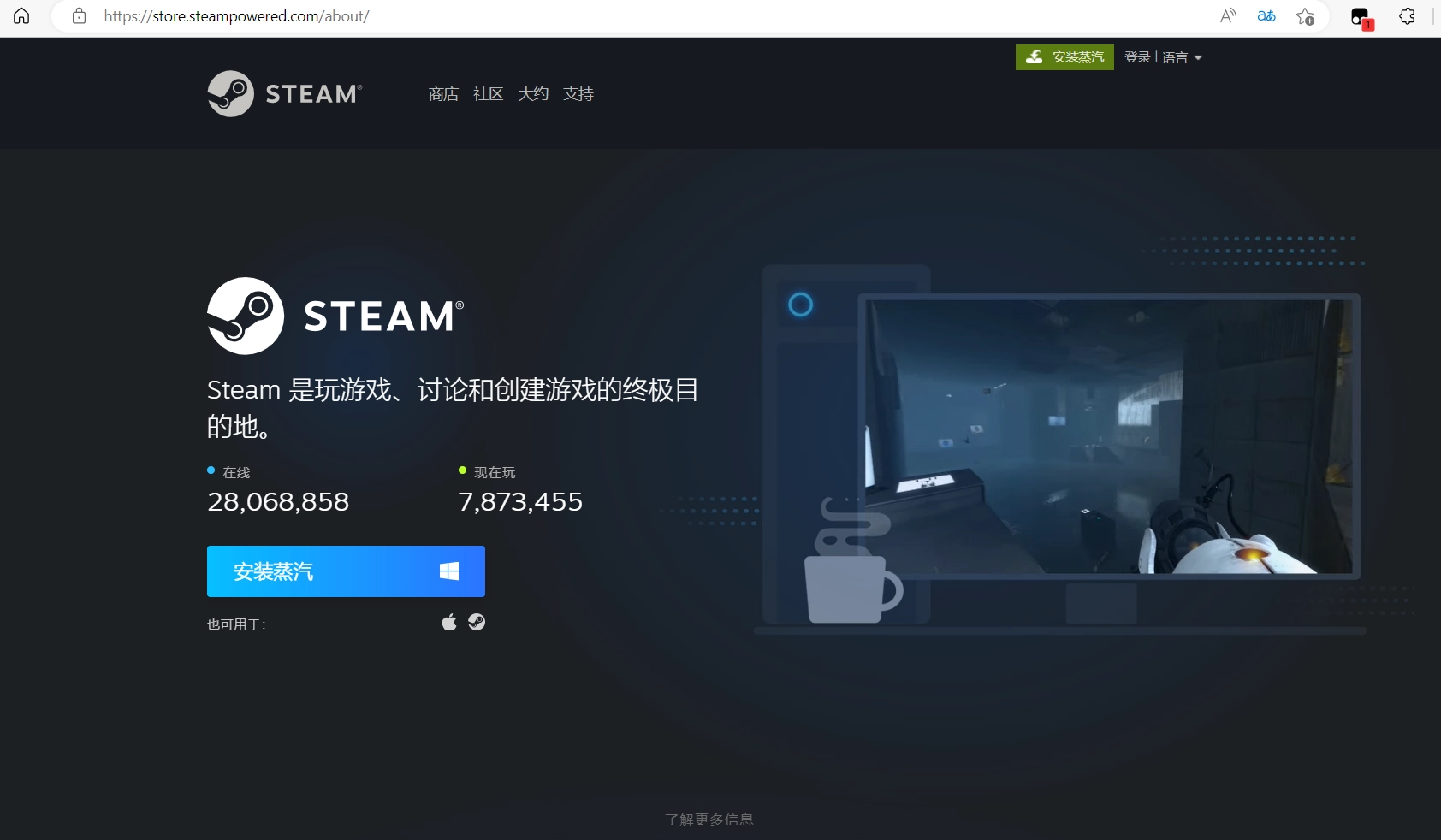 Steam程序下载):https://store.steampowered.com/about/