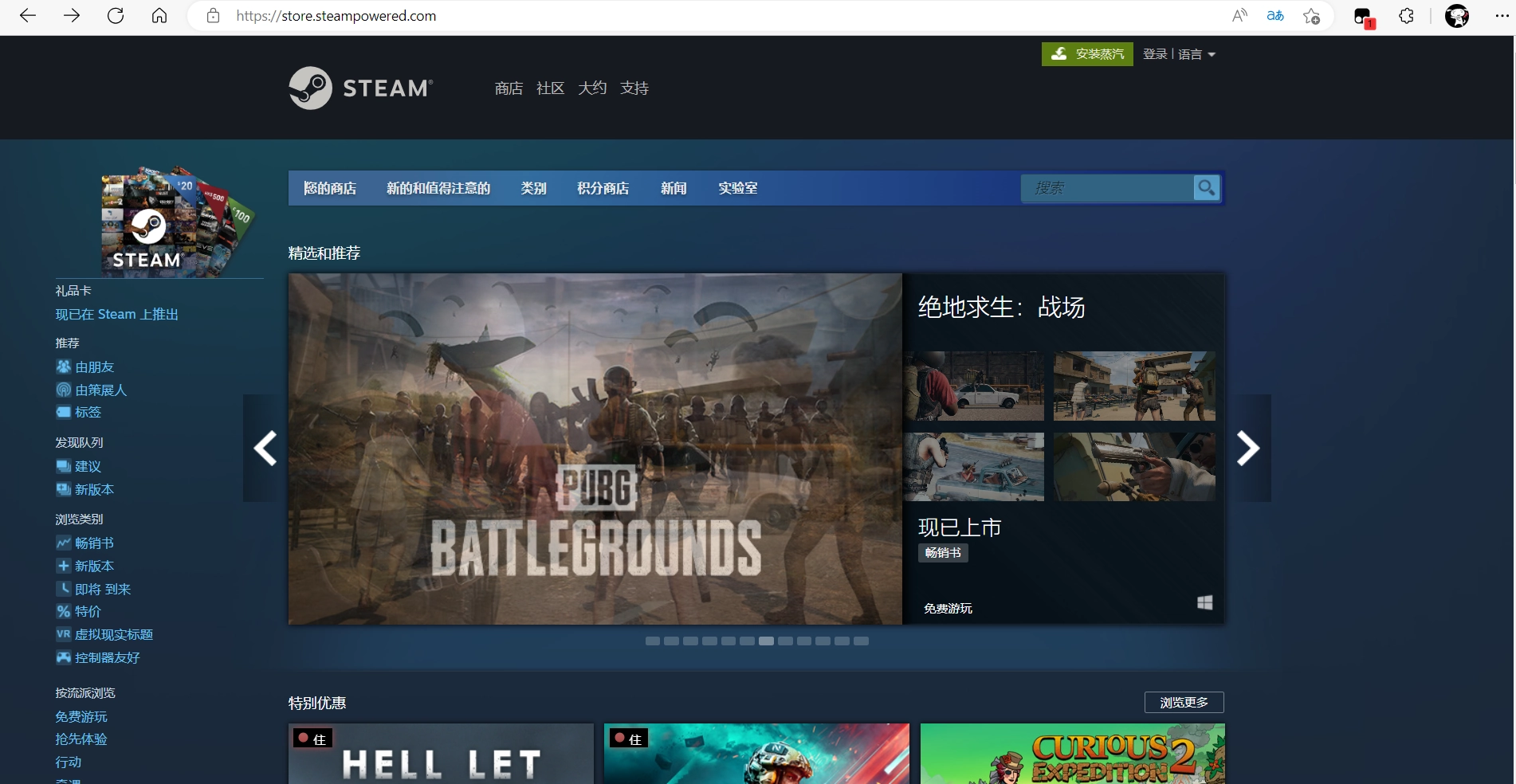 登录后的steam主界面和商店
