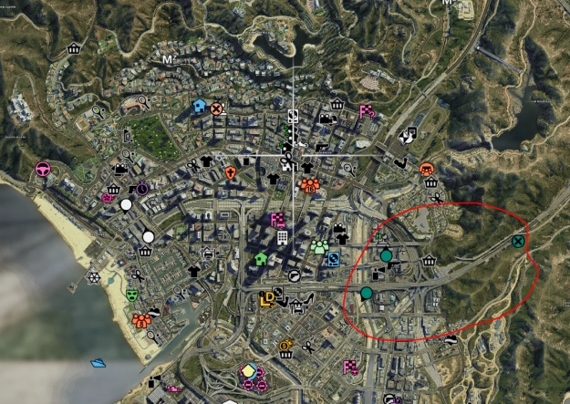 蓝色的东西是好友的资产,蓝色圆形图标是好友;红色圈圈是别人的CEO/摩托帮派,白色或者其他颜色的圈圈是其他玩家